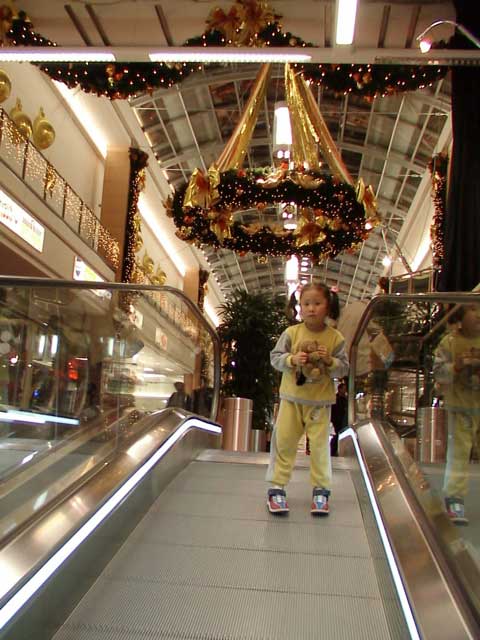 지하 주차장에서 올라가는 에스컬레이터에서 바라보이는 크리스마스 장식이 이뻐 샤론이와 함께 한 컷~