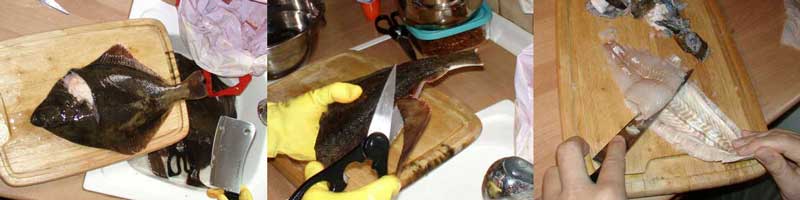 마침내 아내가 내게 광어들을 넘겨주었다.