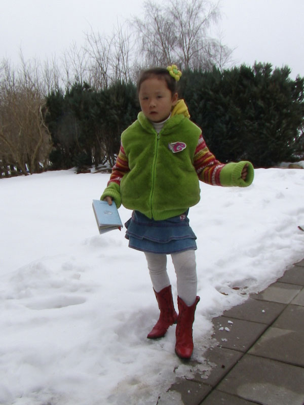 집 마당에서 아직까지도 쌓여있는 눈을 배경으로 사진 한 컷