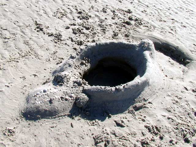 원래는 멋진 모래성을 만들 생각으로 시작하였으나…