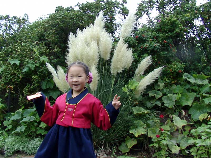 집에서 교회로 출발하기 전 우리집의 명물 갈대를 배경으로 찰칵~
