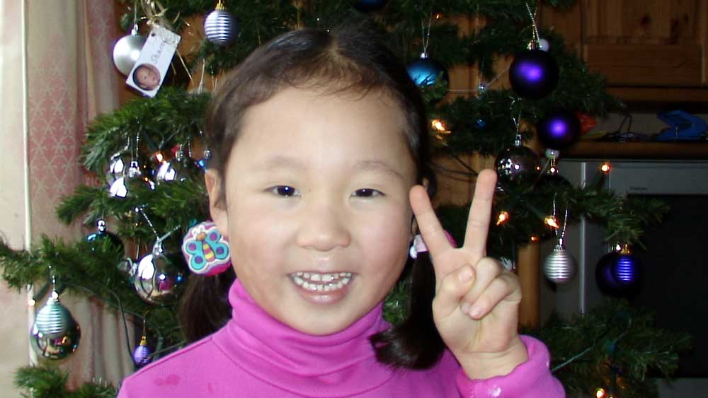 올 해도 어김없이 우리집 거실을 장식하고 있는 크리스마스 트리 앞에서 샤론이가 포즈를 잡고 있다.