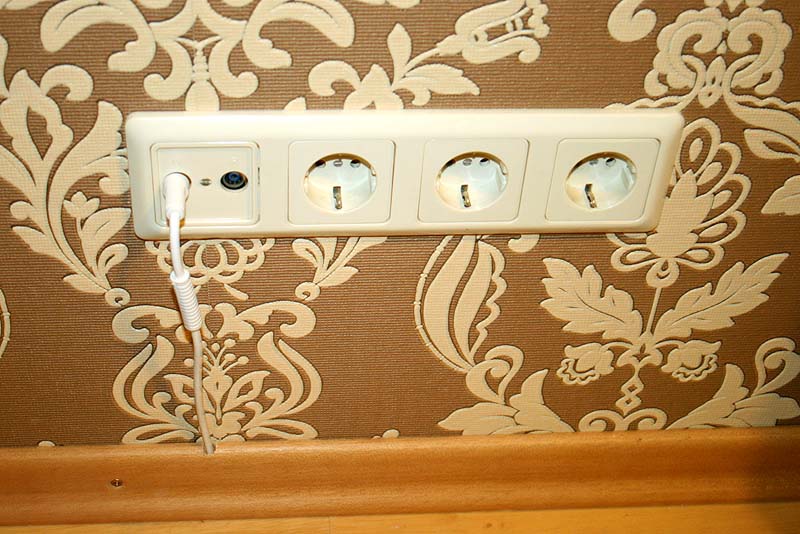 위의 사진 제일 오른편 벽 아랫부분에 보이는 안테나 선이 창문 아래를 통과하여 반대편의 텔레비전까지 연결되도록 한 것이다.