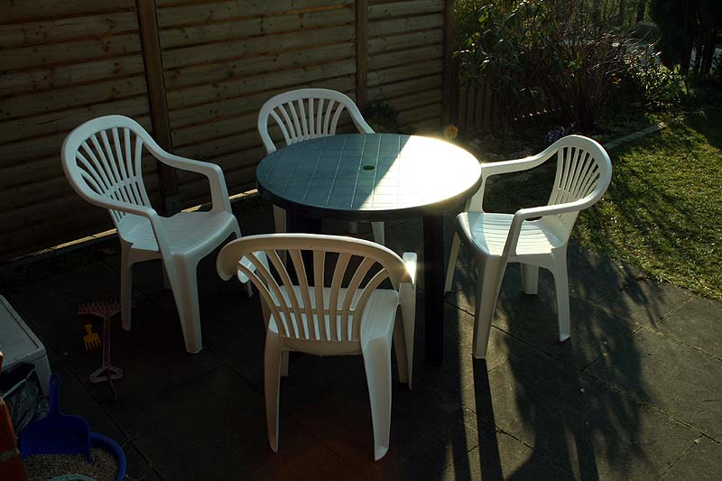 아직까지는 조금 쌀쌀한 봄날씨이지만, 나는 창고에서 야외용 탁자와 의자를 내놓았습니다.