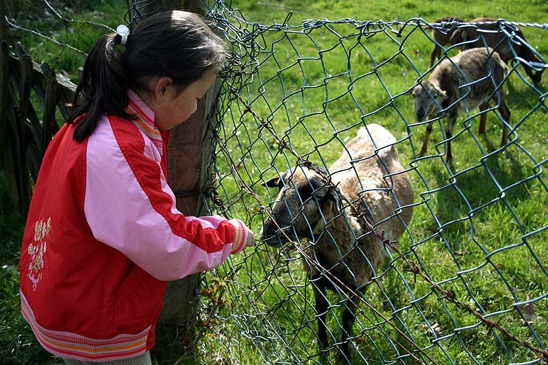 샤론이가 좋아서 풀을 뜯어서 아기염소에게 주면서 매우 좋아합니다.