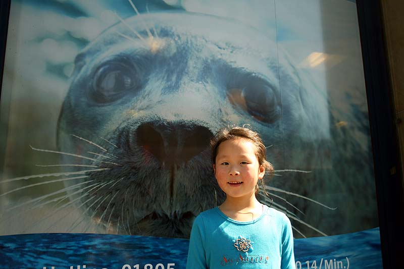 첫번째 사진은 샤론이가 좋아하는 물개그림 앞에서.