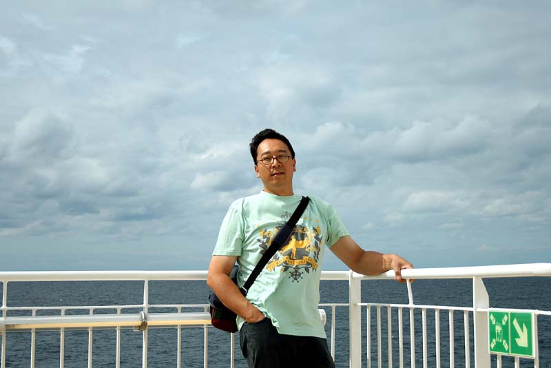 Superspeed 2 호를 타고 라르빅으로 향해서 가던 중 첫번째 사진은 배가 지나가는 자리에 바닷물이 갈라지는 것을 보고 좋아하는 샤론이의 모습 두번째 사진은 샤론이가 찍어준 내 모습
