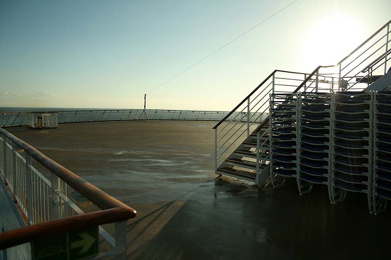 객실에서 잠을 푹 잔 후 아침에 일어나서 갑판에 나가 보았다. 날씨가 약간 쌀쌀해서인지 아니면 아직 이른 시간이어서 그런지 사람들이 거의 보이지 않았다.