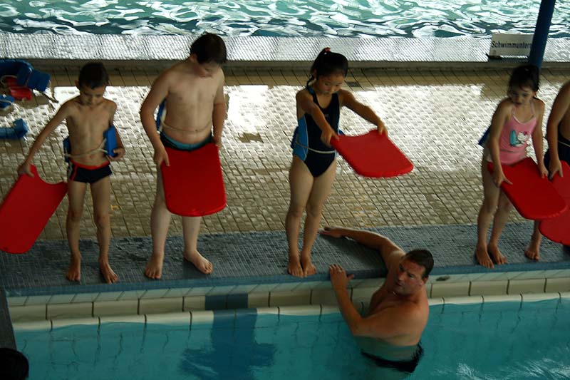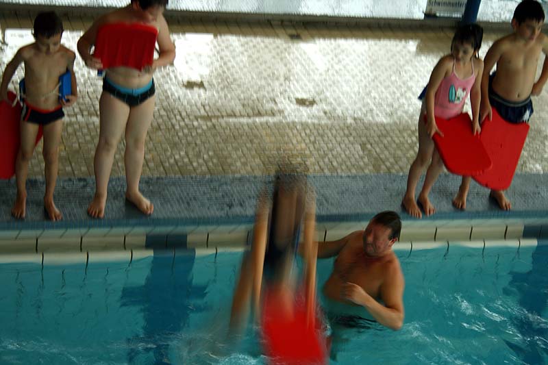 처음으로 수영을 배워보는 샤론이는 물을 겁내지 않고 매우 재미있어 하면서 잘 배웠다.