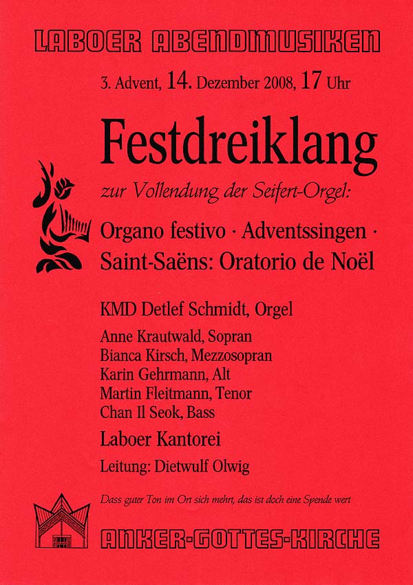 ||0||02008년 12월 14일 오후 5시에 열리는 음악회 포스터 킬 근교에 있는 라뵈에 있는 교회 본당에서 열린다.