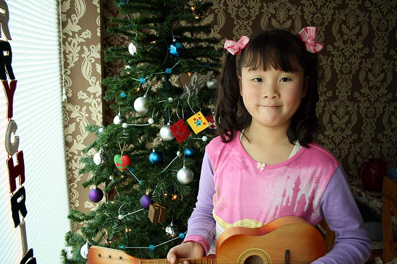 ||0||02009년도 우리집 크리스마스 트리 앞에서 기타를 치며 포즈 잡고 있는 샤론이