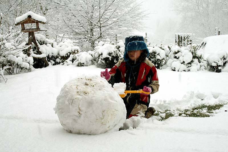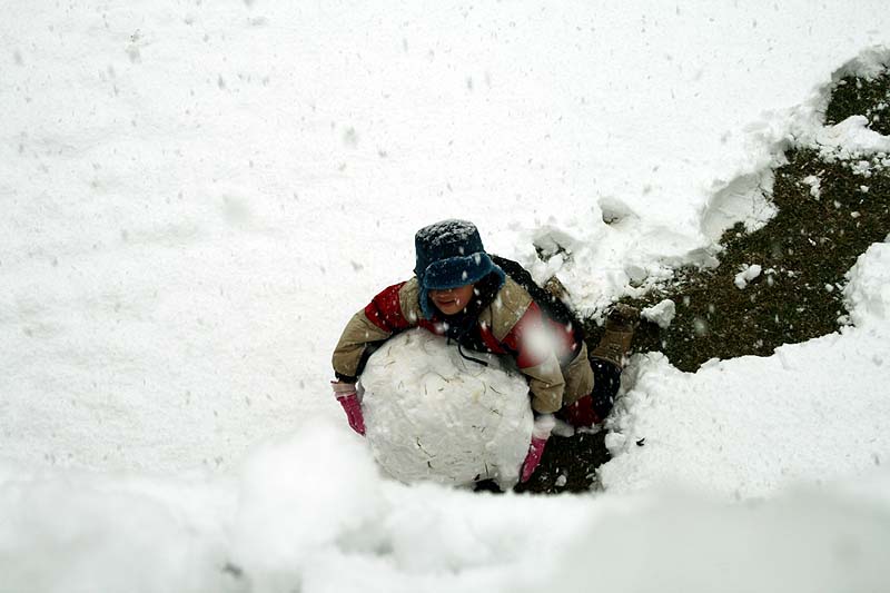 혼자 옷을 챙겨입고는 마당으로 나가서 눈을 굴렸습니다.