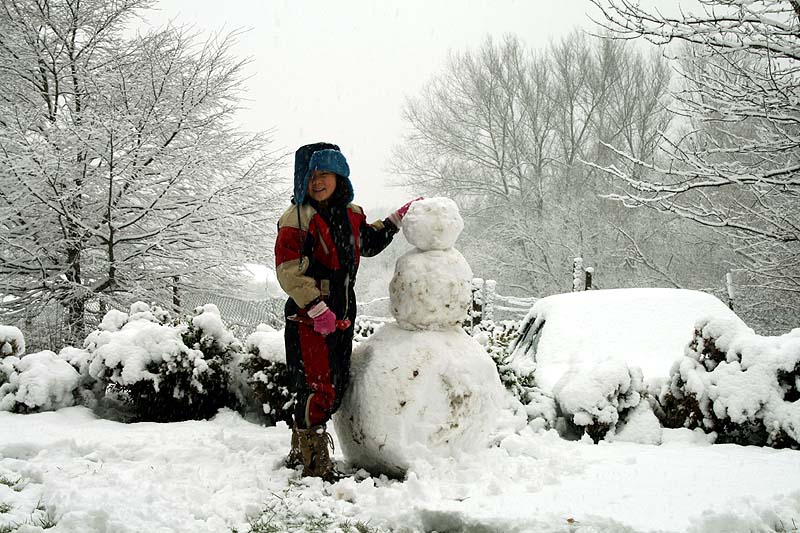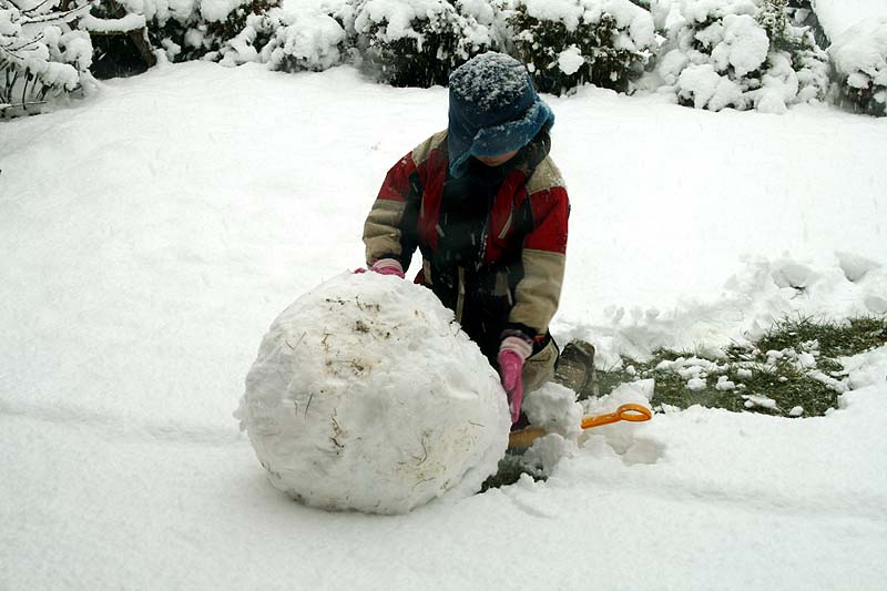 샤론이는 생각보다 훨씬 큰 눈사람을 만들었습니다.