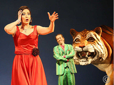 Die Männer werden auf diese Weise gezwungen, ihre Maschen fallen zu lassen. Mustafa schwebt sowieso schon bald willenlos im Siebten Himmel. Isabellas Begleiter Taddeo, den Jörg Sabrowski mit aufgeplusterter Komödiantik spielt und singt, wird von den Krallen und Zähnen diverser Tigerinnen eingeschüchtert. Und der geknechtete Bademeister Lindoro ist sowieso schon längst ein handzahmer Liebesschwärmer. Sein Singen allerdings macht den taiwanesischen Tenor Chien-Chi Lin zum heimlichen Star des Abends: Schwerelos leicht und mit herrlich aufstrahlender Kopf-Resonanz lässt er keine Rossini-Wünsche offen.