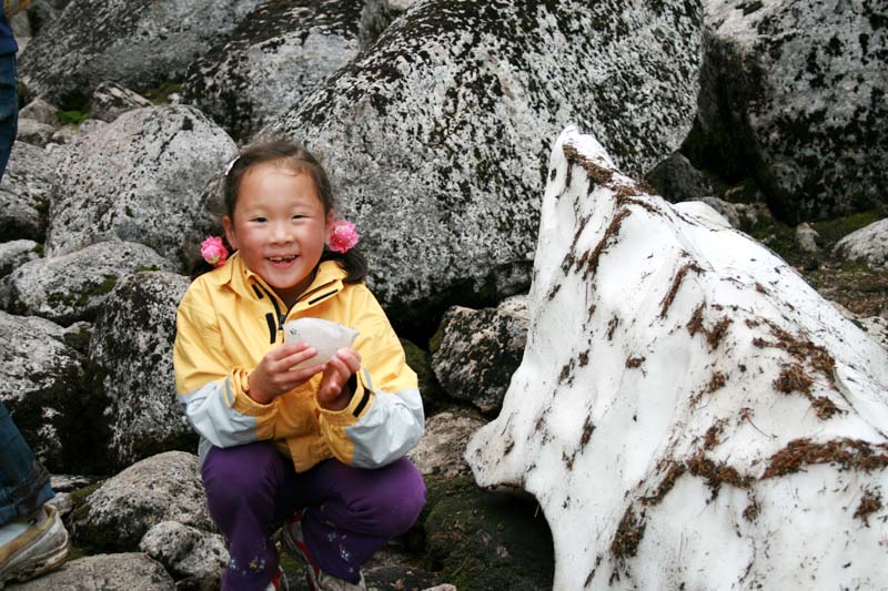 하지만 우리는 체력을 비축하기 위하여 우리 등산 코스에서 떨어진 곳에 있는 눈을 만지게 해주지 않았다.
