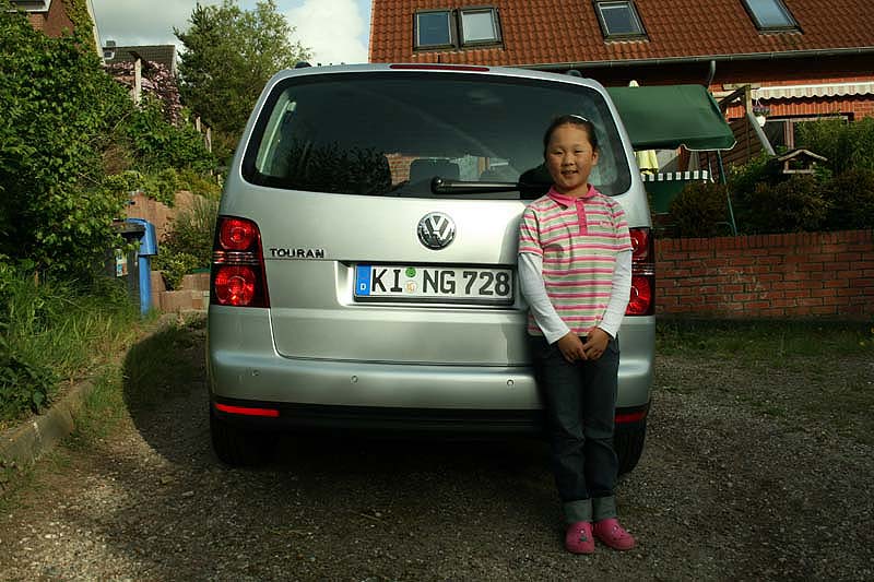 새 차 앞에서 포즈 잡고 있는 샤론 많이 자랐구나, 새 차타고 교회갈 때 너무 좋아할 샤론이을 생각하니 할머니가 많이 기쁘다,