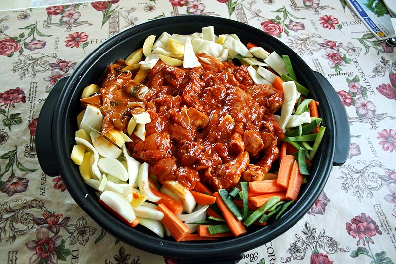 얼마전 아내는 전기불판(?)을 샀다. 그 전기불판에 처음으로 요리해보는 닭갈비 요리 전과 요리 후의 모습이다.
