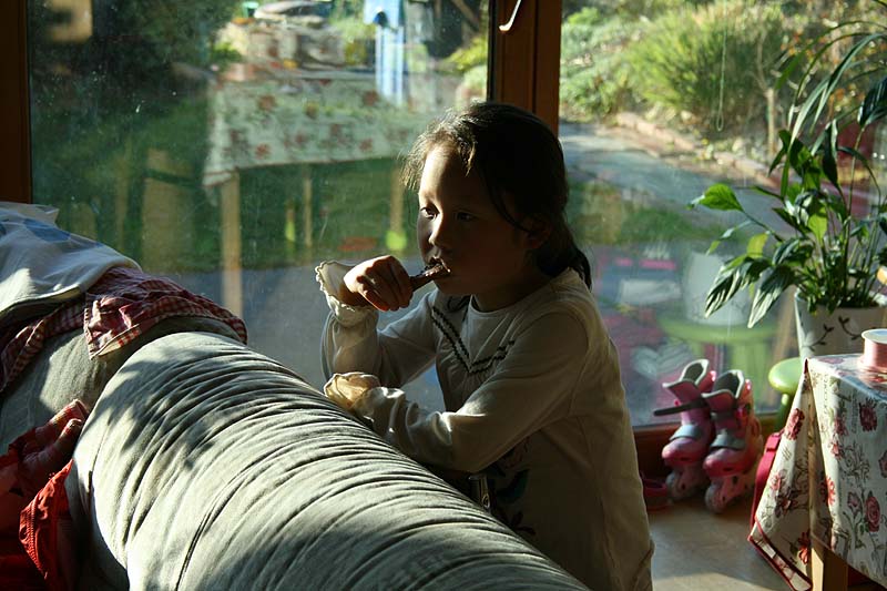 아래 사진은 돼지갈비를 뜯으면서 텔레비젼을 보는 샤론이