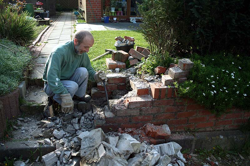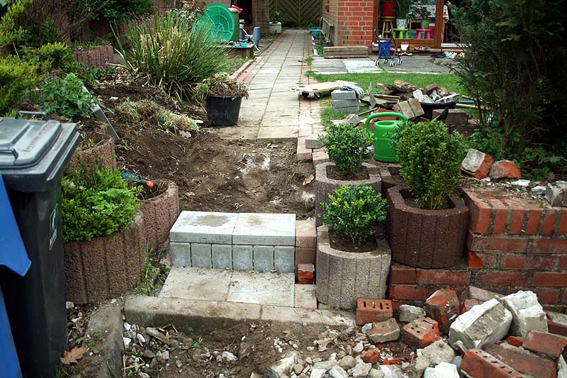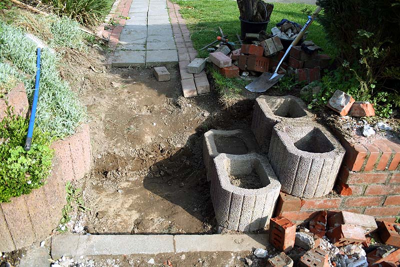 이제 계단을 끝났고 계단 왼편부터 쭉 이어지는 화분돌담의 작업이 계속됩니다. (아~~~ 언제나 끝날까!)