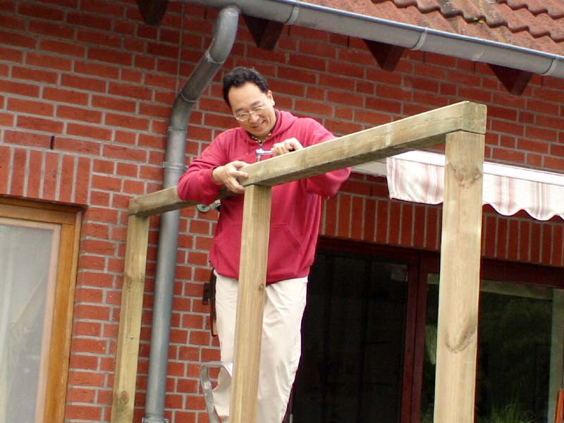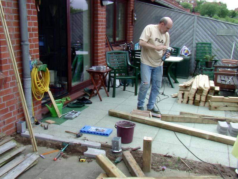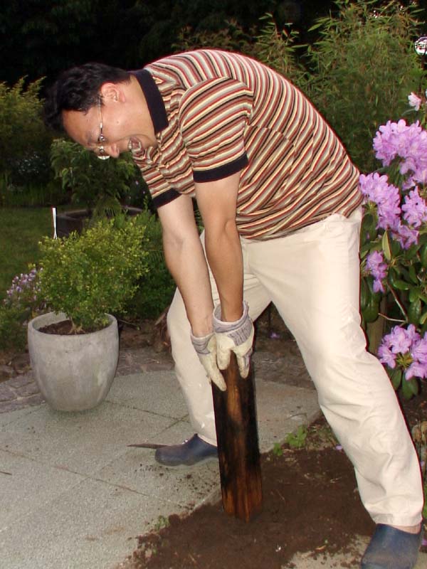 그리고 좀 더 튼튼하게 하기 위하여 땅에 기둥 지지대(?)를 묻고 그 주위에 시멘트를 부었다.