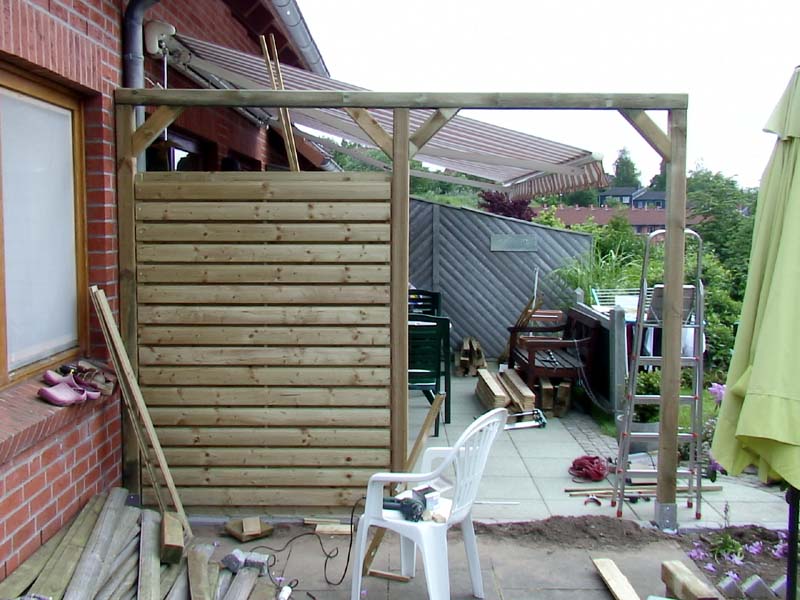 나무 담장이 올라갈 부분 아래에는 벽돌을 깔아서 깔끔하게 처리했다.
