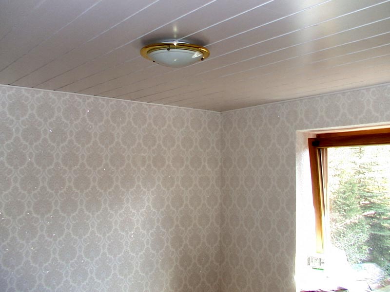 천장에는 나무 판넬을 붙이고 벽에는 우아하고도 멋진 벽지를 도배했다.