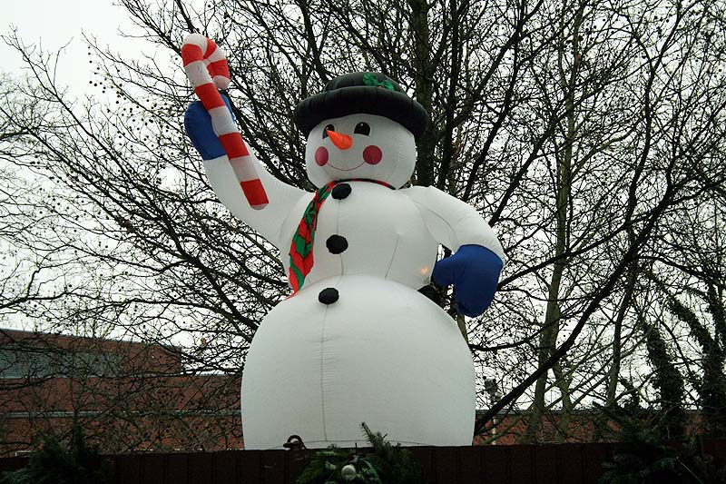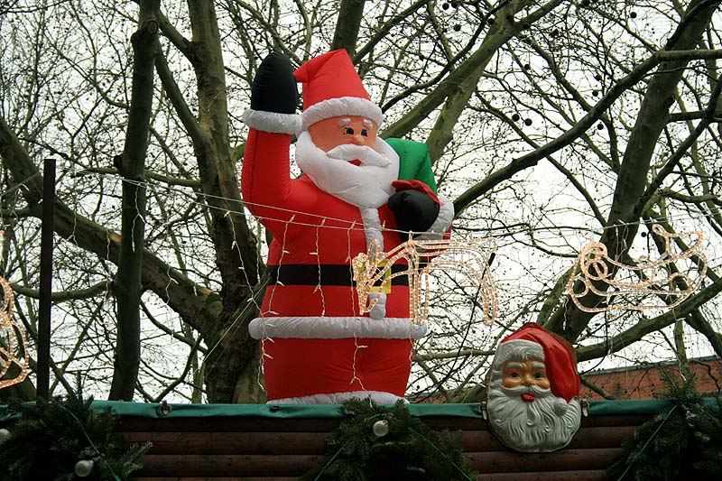 킬 시내에 있는 성탄절 시장(Weihnachtsmarkt)에 있는 가게 지붕에 설치된 풍선 장식