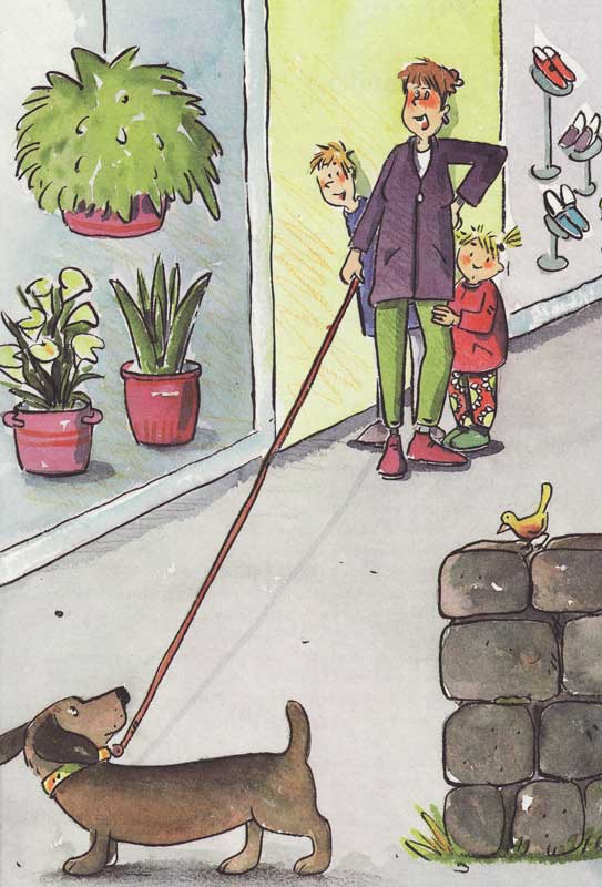 “Die gehen wandern! Dann nehmen sie mich bestimmt mit!”, dachte er und legte sich auf die sauberen Schuhe.