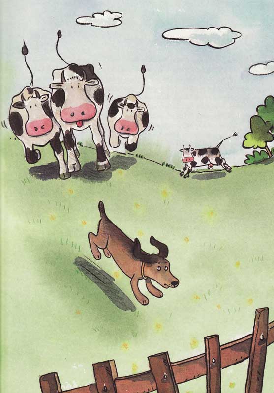 Er lief unter dem Zaun hindurch und kläffte die Kühe an.